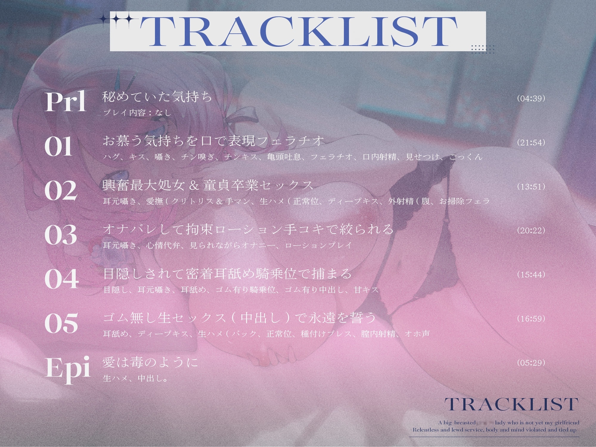 高くて可愛らしい喘ぎ声はもちろんのこと、たまに発声される低めの「お゛っお゛っ♡お゛ぉ゛~♡」という喘ぎ声まで、愛している人と繋がれている嬉しさがこれでもかと溢れ出ていてこちらも嬉しくなってしまい、どのトラックも丗怜凪の愛に包まれた感覚で気持ちよく果てることができるのが最高でした!